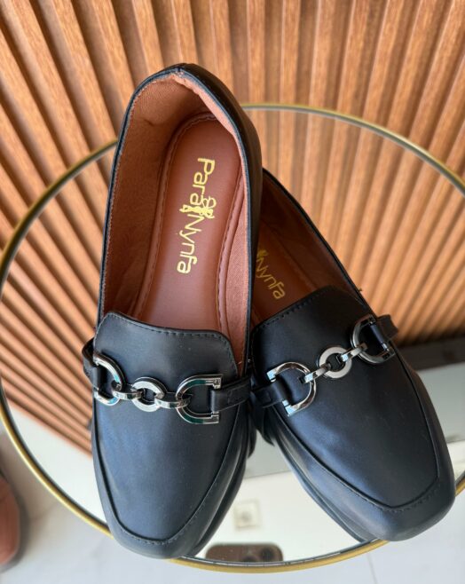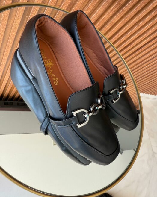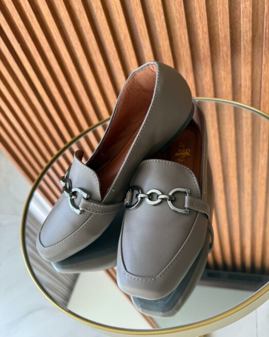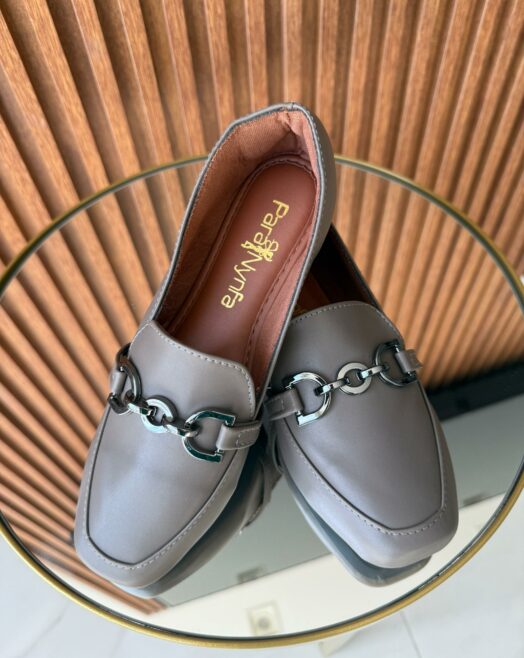 Mocassim Bico Quadrado Detalhe Corrente Cinza