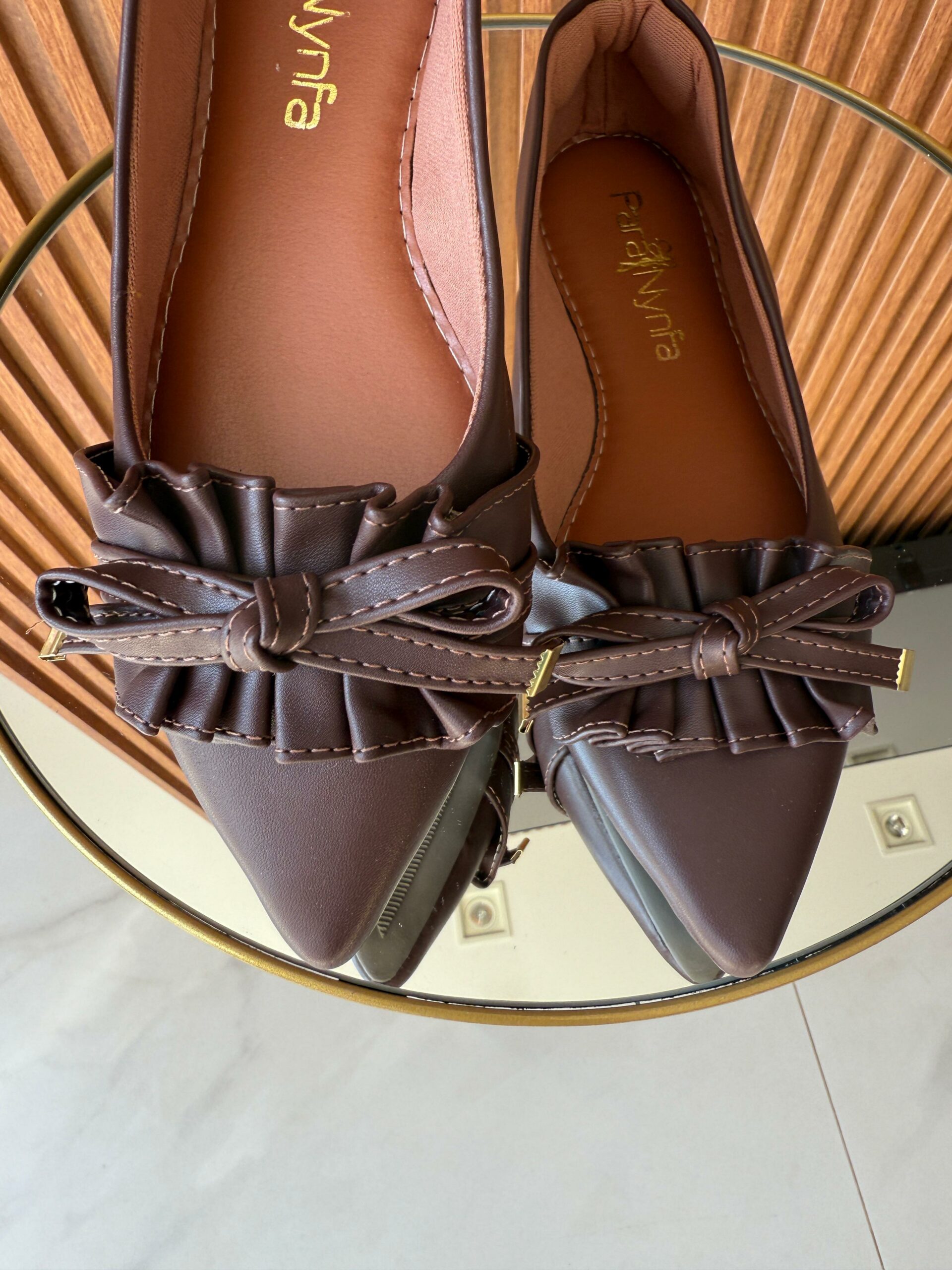 Be the first to review “Sapatilha Bico Fino Babado Café”