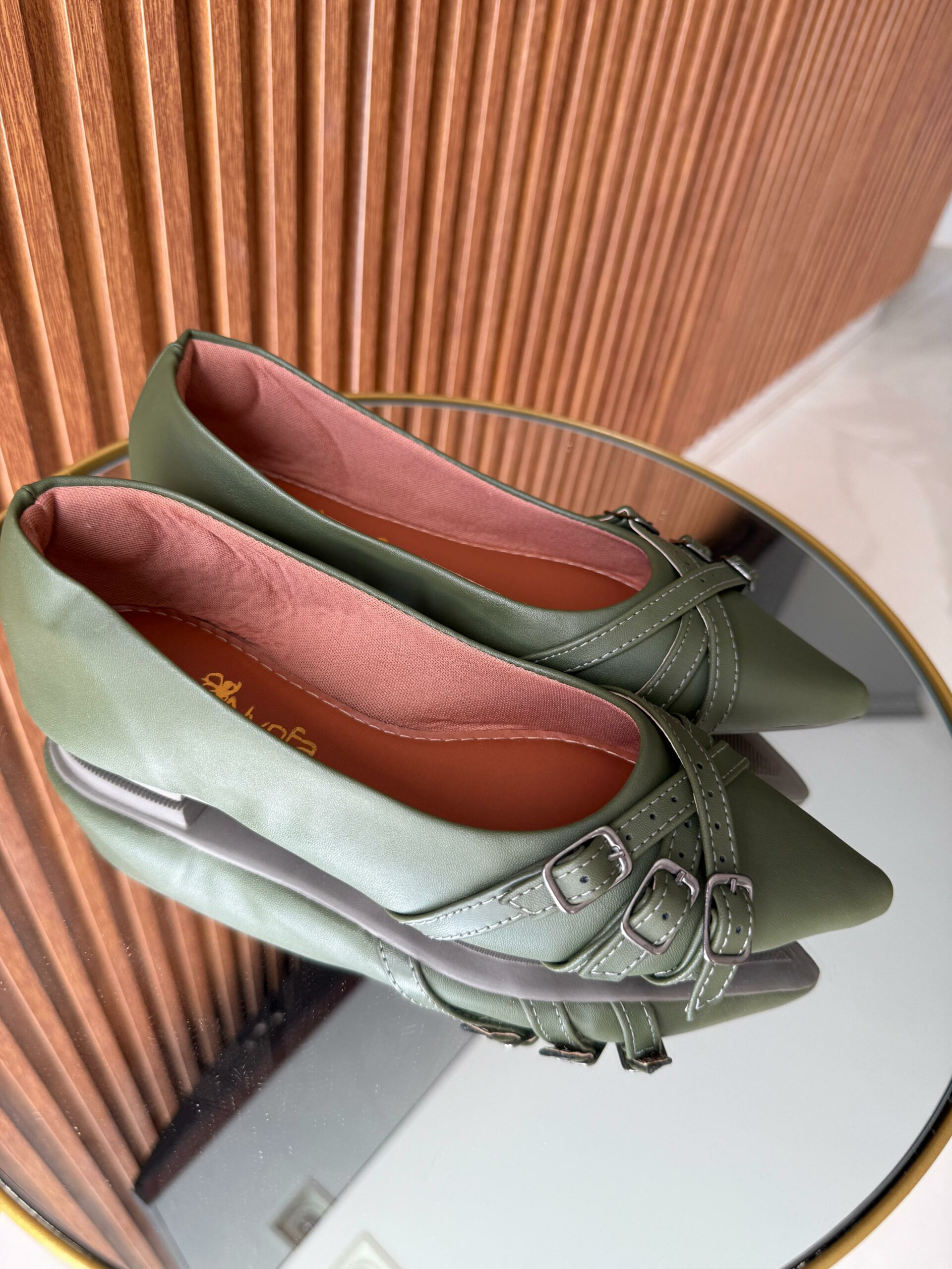 Nossa Sapatilha de bico fino com fivelas é a combinação perfeita entre elegância e praticidade. Produzida com materiais de alta qualidade, ela oferece maciez, leveza e conforto para o dia a dia — ideal para quem não abre mão de estar bem vestida sem sacrificar o bem-estar.